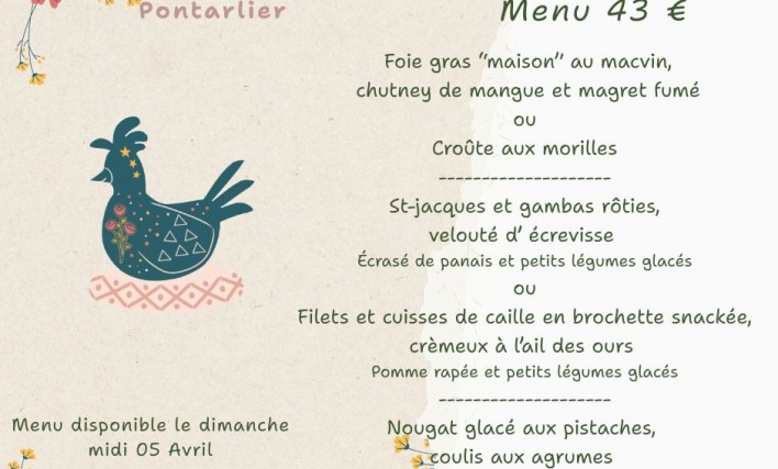 Actus Plats du jour 31 mars 2025 Restaurant La Pinte Comtoise MENU PÂQUES (20 Avril 2025) Lire la suite